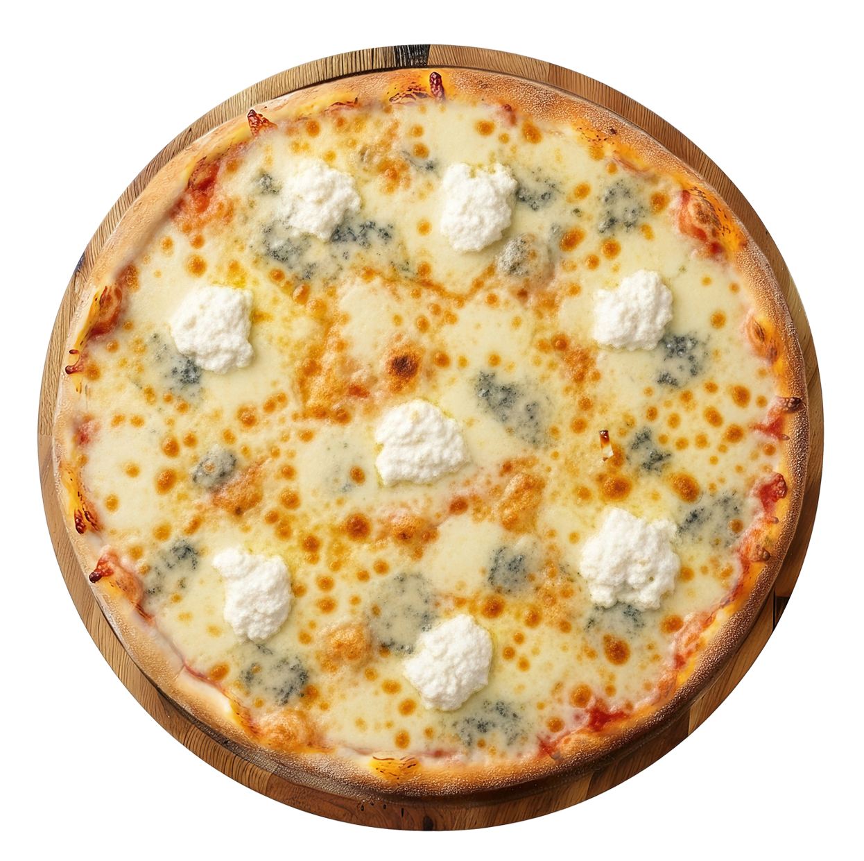 Sauce tomate, mozzarella, brie, bleu, parmesan.