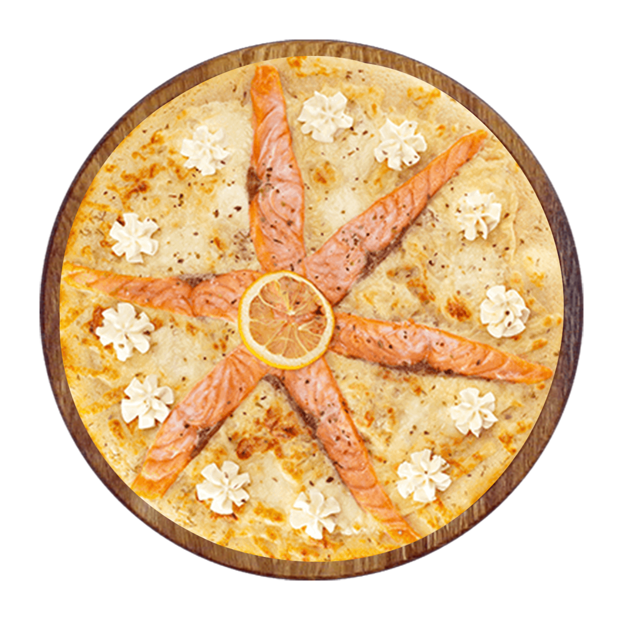 Sauce tomate, mozzarella, saumon fumé, citron, crème fraîche.