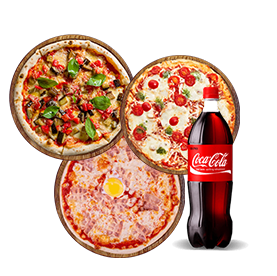 3 Pizzas Junior au choix + 1 Maxi coca cola.