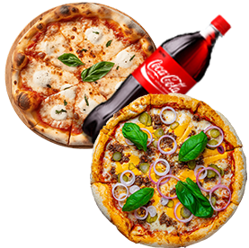 2 Pizzas Super au choix + 1 Maxi coca cola.